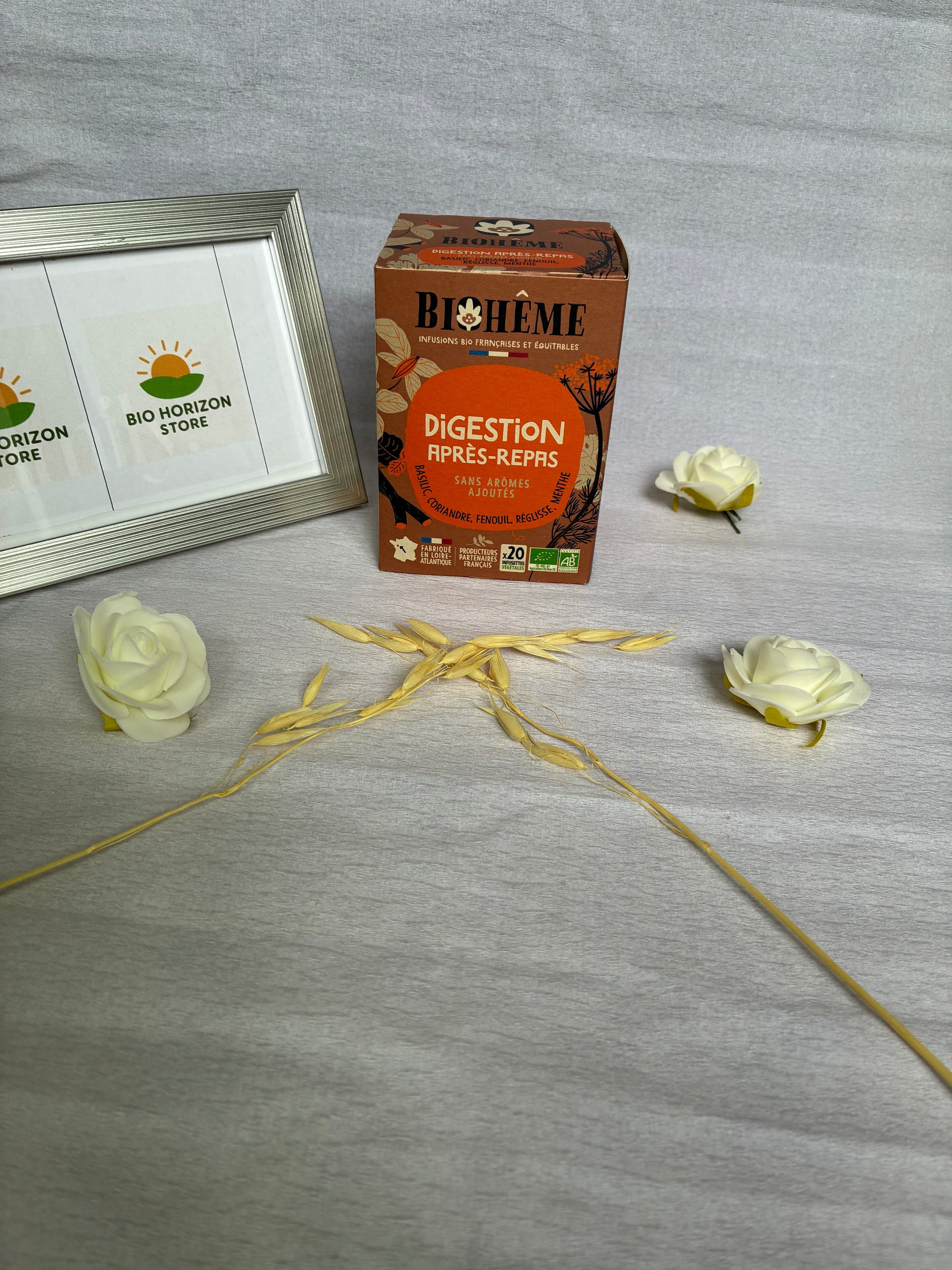 Le fenouil aide à limiter les ballonnements indésirables. La réglisse , la menthe poivrée et le basilic apporte une touche de fraîcheur en bouche , agréable en fin de repas.